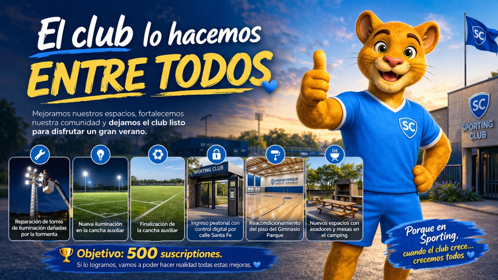 El Sporting Club presentó una nueva campaña destinada a financiar mejoras en sus instalaciones, con el objetivo de seguir creciendo como institución y brindar mejores espacios a sus socios y a toda la comunidad.